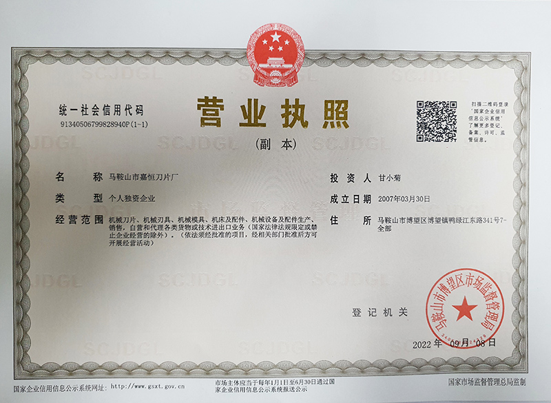- 馬鞍山市嘉恒刀片廠位于馬鞍山市東郊博望鎮馬鞍山大和機械裝備產業園,交通位置優良,是剪切刀片專業制造廠家,主要產品:各種規格型號的剪板機刀片、塑料破碎機刀片、軋鋼...